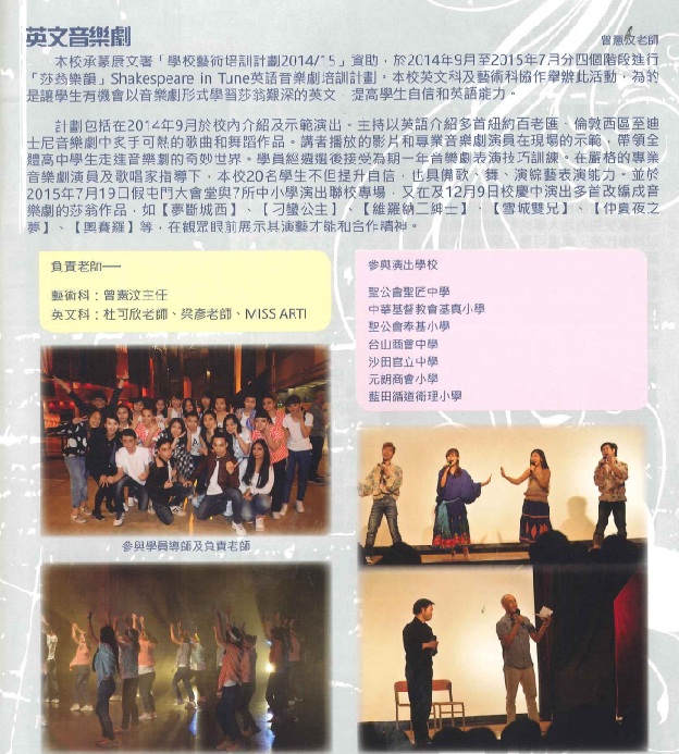 - 8. 聖匠劇社(戲劇培訓: 演出,道具, 化妝, 燈光, 舞台設計及音效設)
