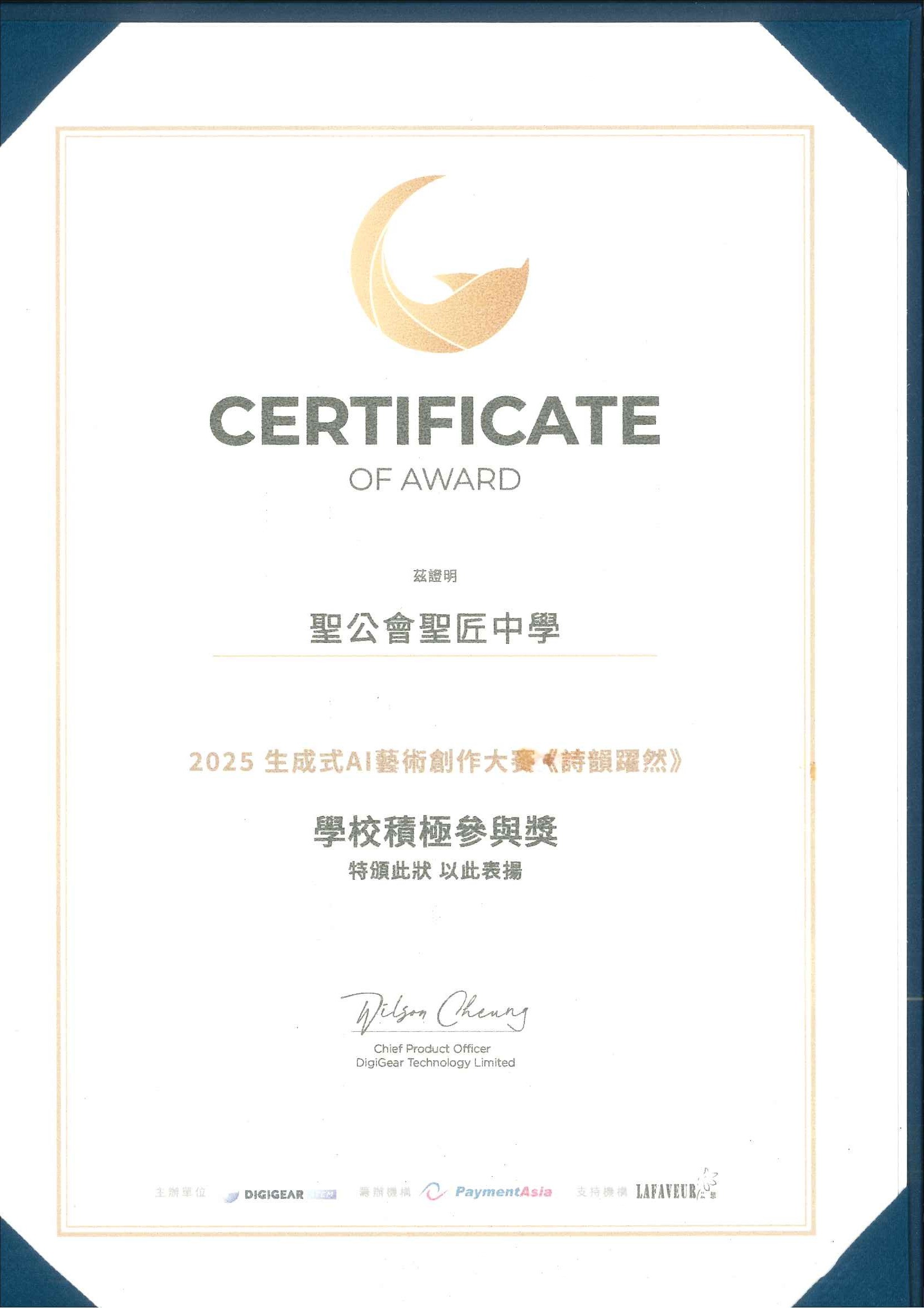 由DigiGear Technology Limited主辦的「2025生成式AI藝術創作大賽《詩韻躍然》」,本校同學獲得多個獎項,包括﹕